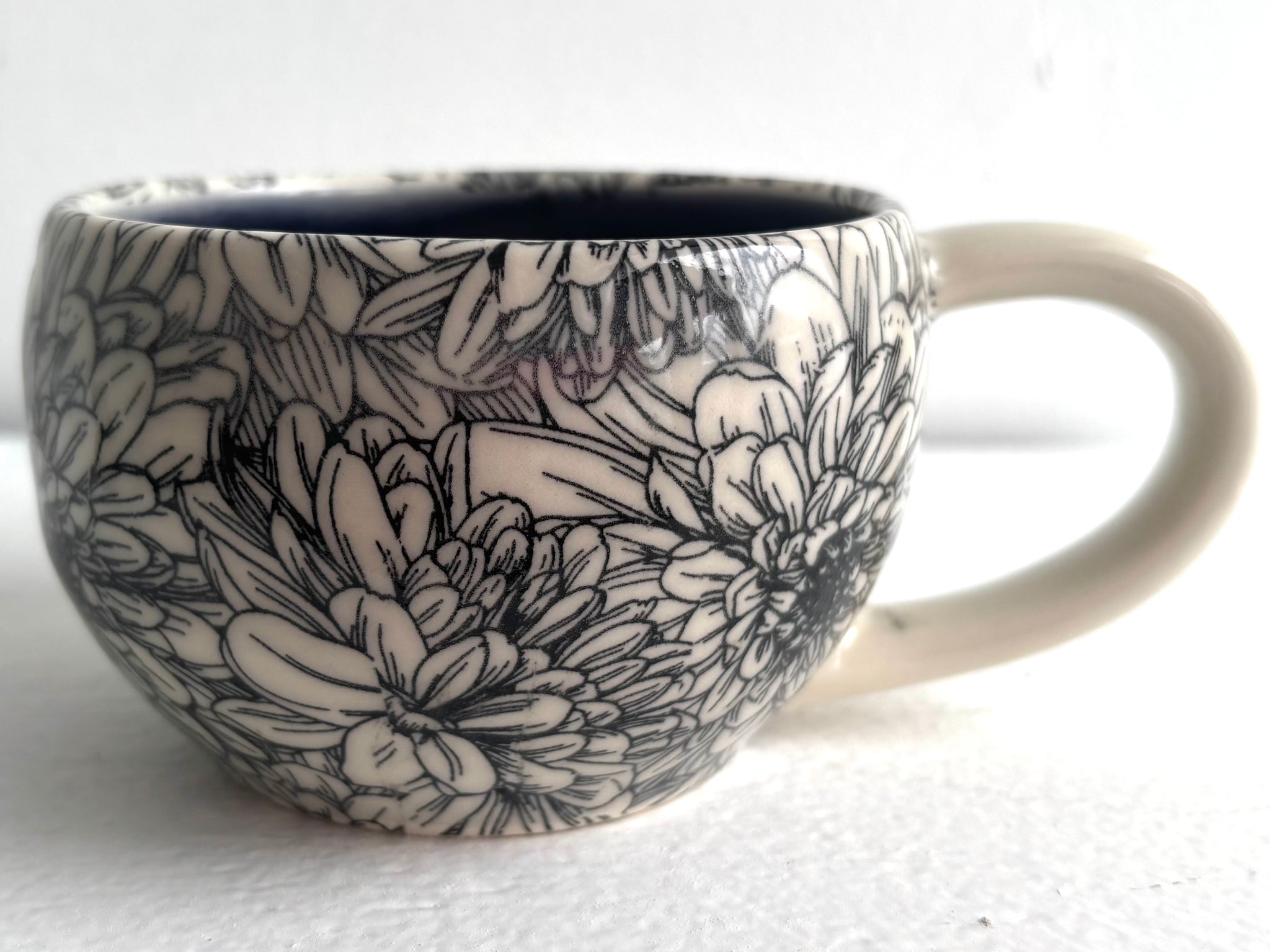 Porcelain Pottery Latte/Flat White Mug Chrysanthemums/NEW SHAPE