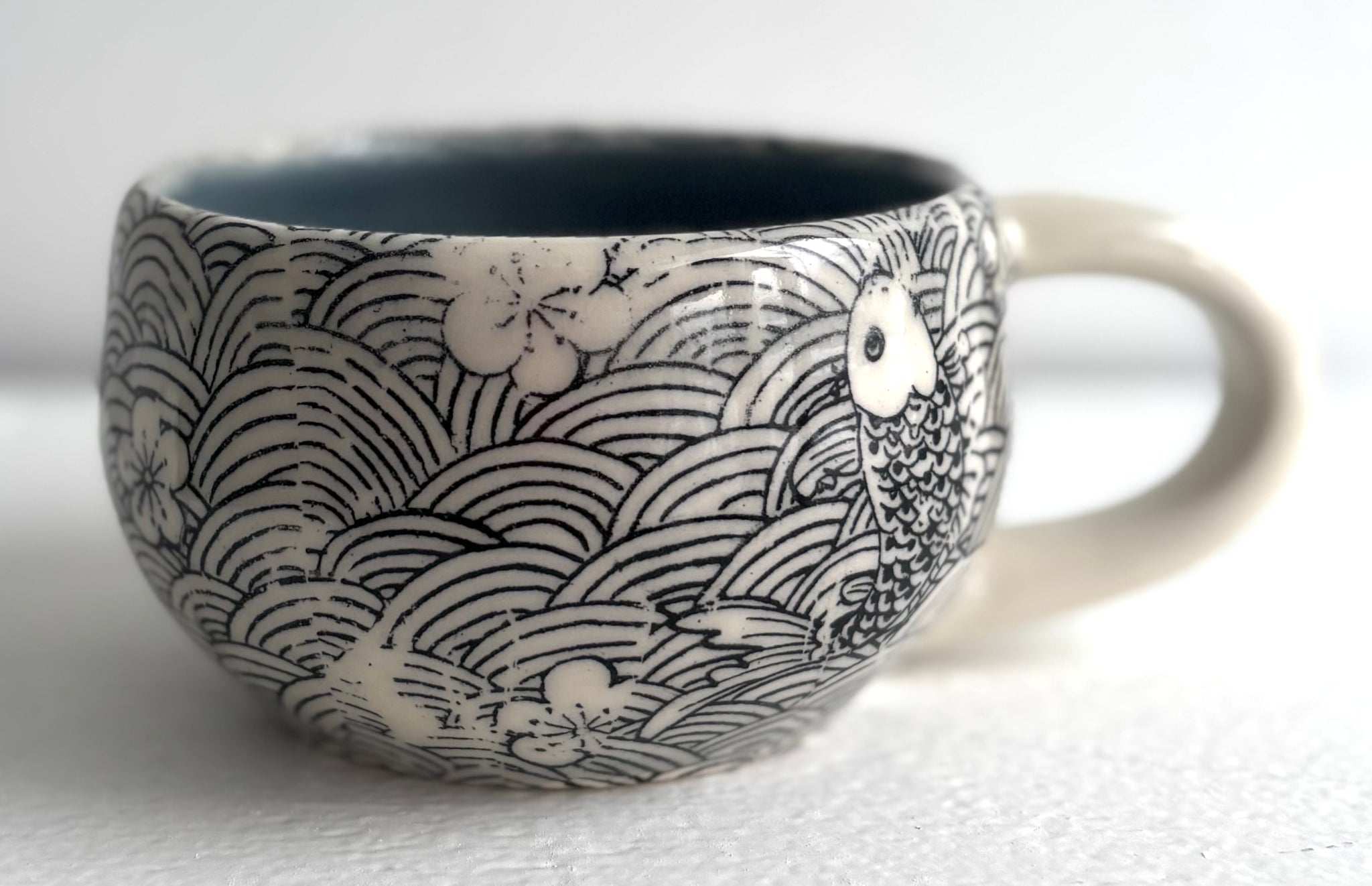 Porcelain Pottery Latte/Flat White Mug Koi/NEW SHAPE