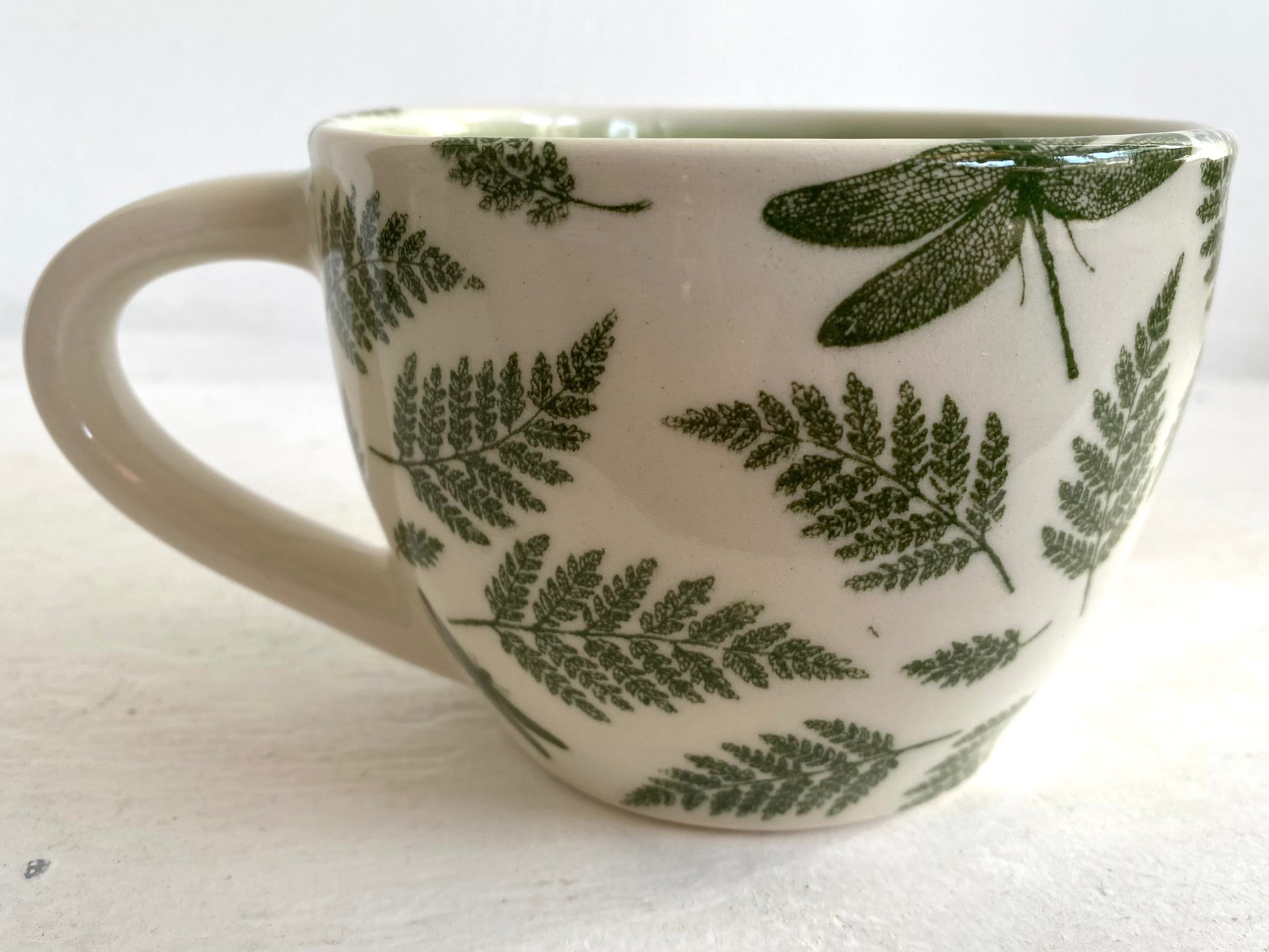 Porcelain Pottery Latte Mug Dragonflies and Ferns/NEW SHAPE