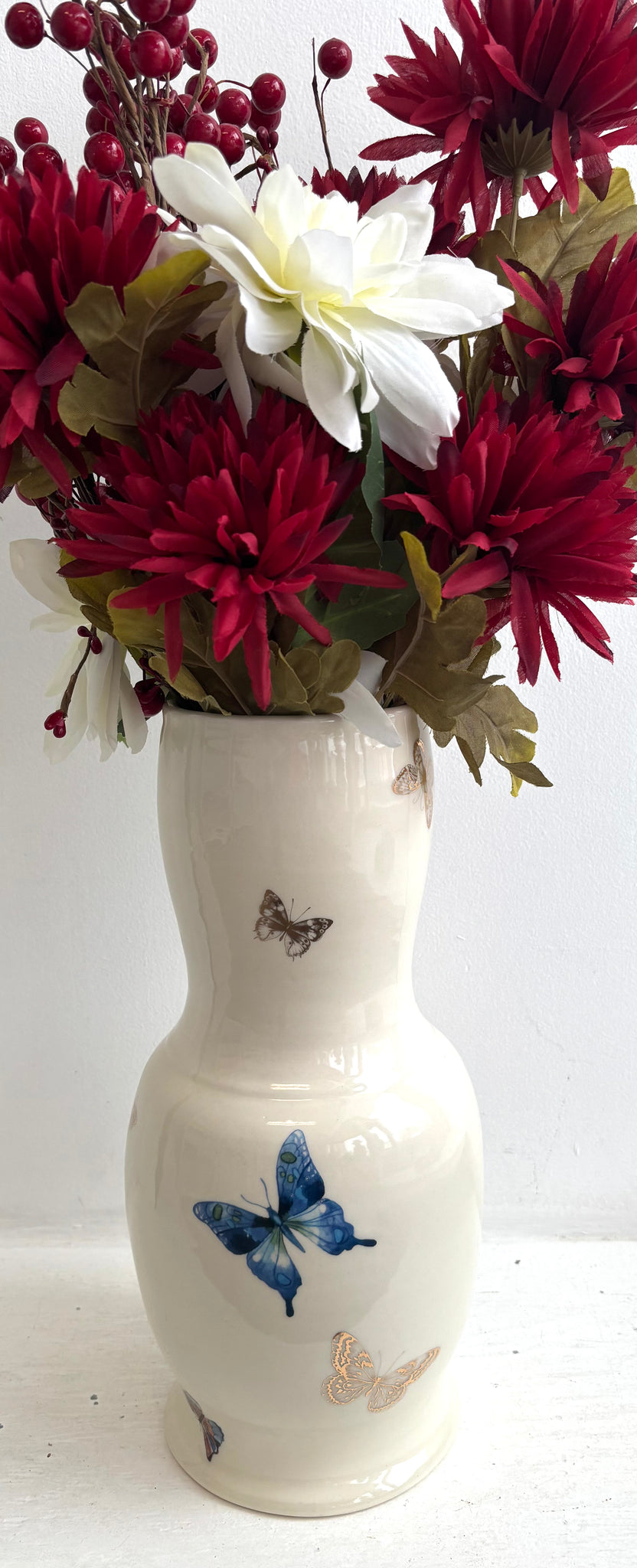 Porcelain Pottery Over size Vase with Full Colour and Gold Butterflies Large