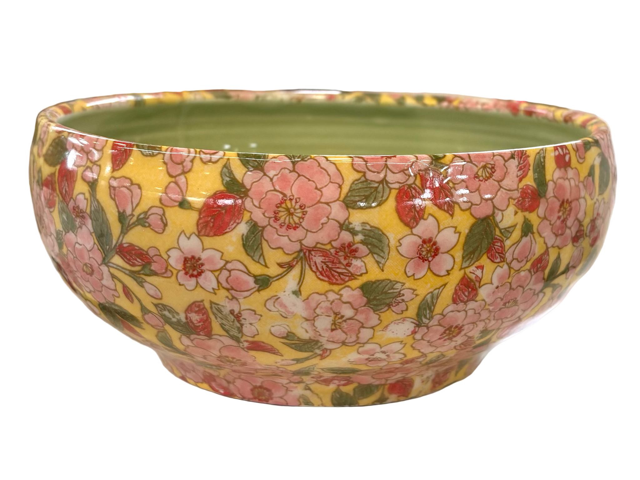 Porcelain Pottery BOWL with Pink flowers on a Yellow Ground NEW
